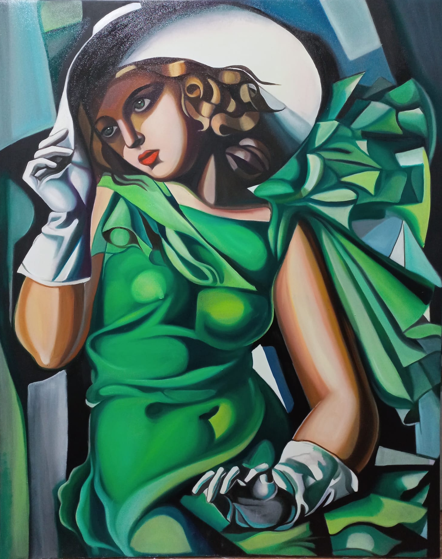 Tamara Lempicka, Dziewczyna w zielonej sukience, w rękawiczkach, obraz olejny na płótnie 100x80cm + rama frezowana drewniana, kolor złoty Opublikowany 15 października, 2025 przez ART-EMI Emilia Czupryńska Odpowiedz https://www.facebook.com/share/r/1FRDmLqsQP